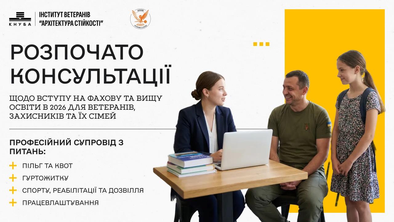 Ветеранський Кластер України та Інститут ветеранів «Архітектура Стійкості» КНУБА надає можливості отримати освіту для ветеранів, захисників та їх дітей у вищіх навчальних закладах України