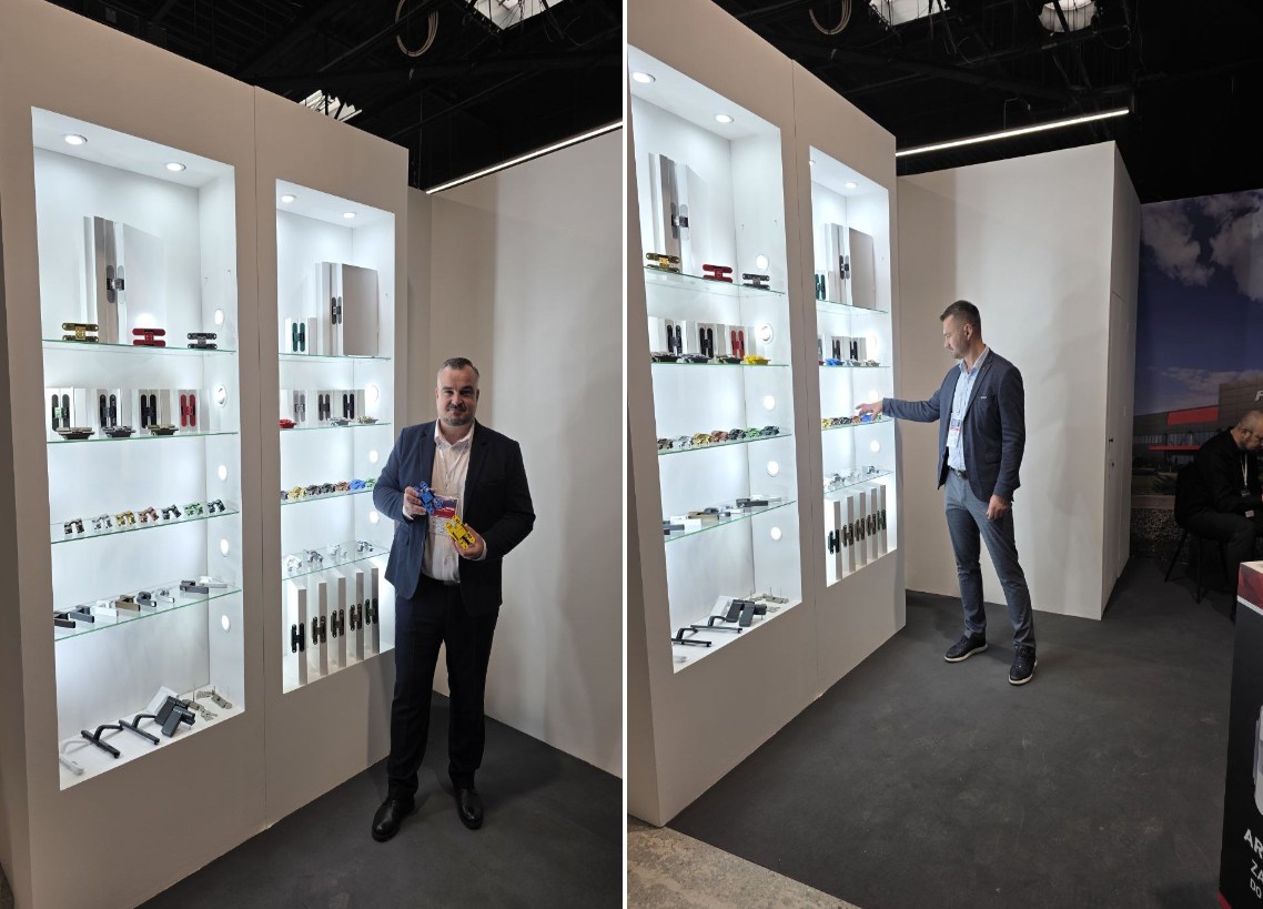 Стенд AXOR INDUSTRY привертає увагу відвідувачів широким асортиментом фурнітури для вікон і дверей, а також актуальними зразками петель для міжкімнатних конструкцій. Компанія представляє не лише продукцію, а й філософію розвитку українського виробництва — якість, надійність і сучасний дизайн, що відповідає вимогам європейських ринків.