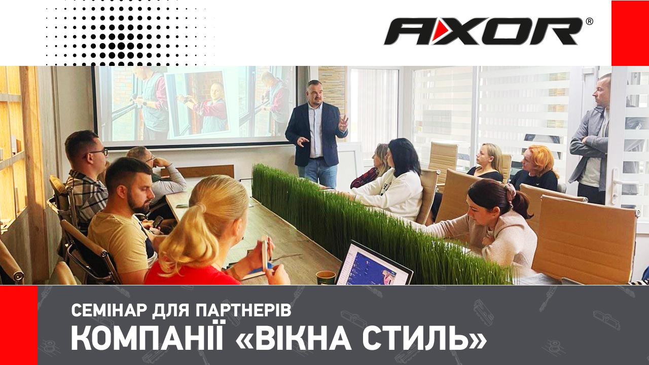 Компанія AXOR продовжує активно ділитися досвідом і новітніми розробками зі своїми партнерами. 24 жовтня 2025 року відбувся семінар для менеджерів компанії «Вікна Стиль», який провів директор з продажу компанії Роман Петренко та регіональний менеджер Сергій Золоторчук.