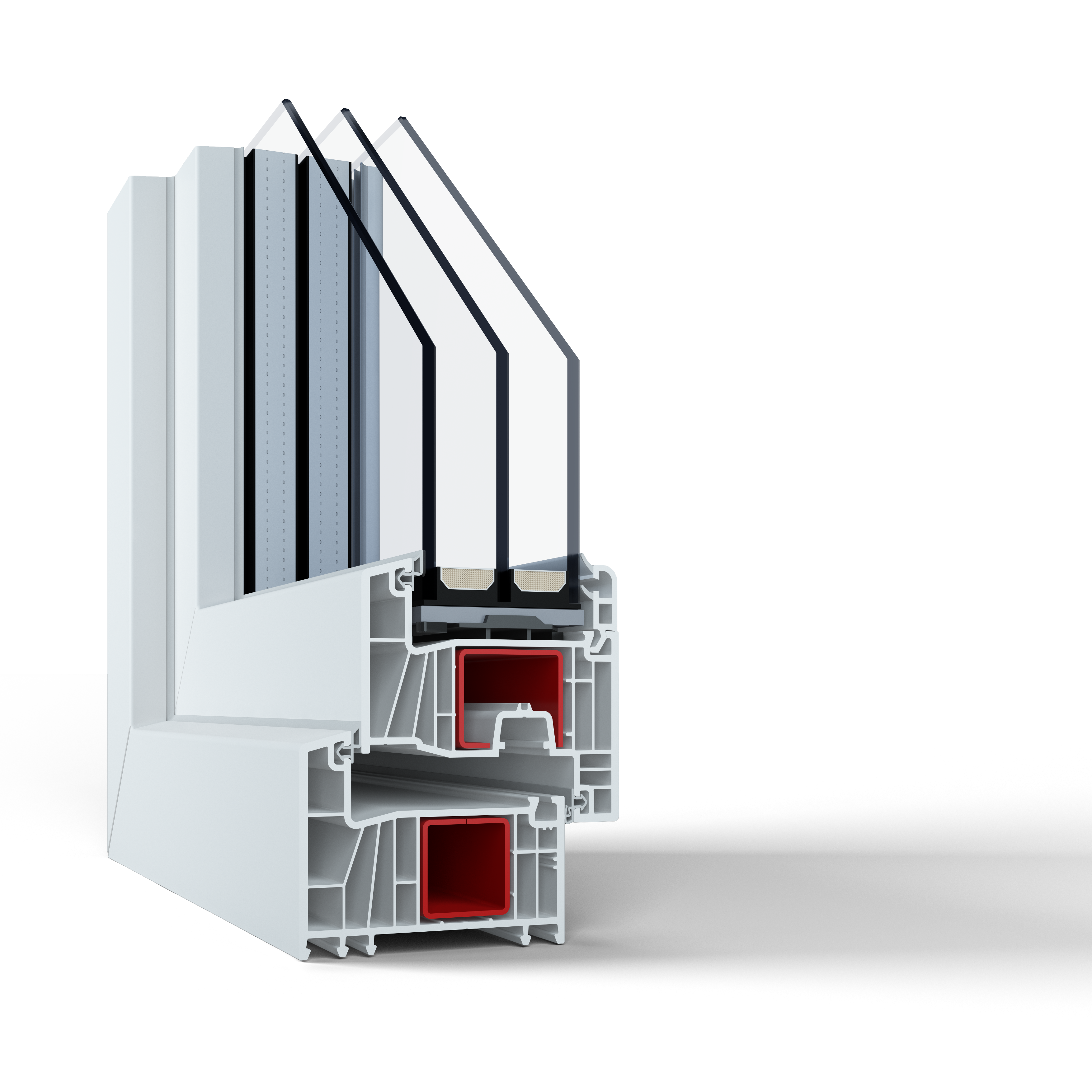 - Монтажна глибина 81 мм та 7-камерна будова: забезпечують виняткові показники опору теплопередачі. Це ідеальне рішення для вимог ДСТУ та проєктів пасивних будинків.